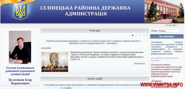 Але на сайті Іллінецької РДА ще не прибрали портрет керівника, хоча новини сайту оновлені за 3 вересня.