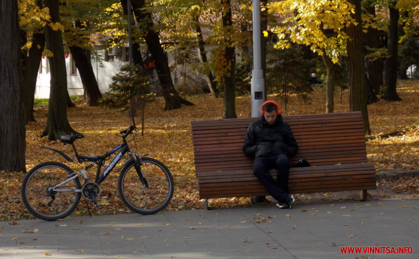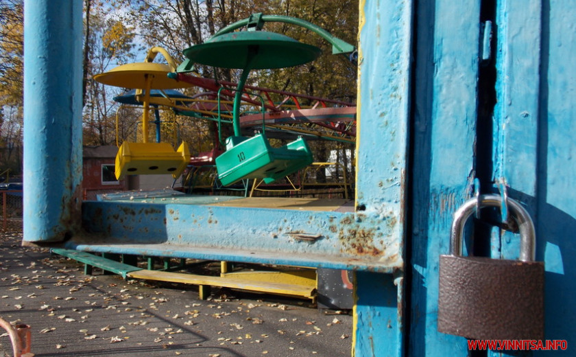 Центральний парк імені М. Леонтовича у Вінниці поринув у осінні пейзажі. Вже від цього понеділка атракціони не працюють, як і каси. Відчинені лише батути для дітей. Поки сприятлива погода, на території чимало людей. Гуляють, їздять на велосипедах, збирають осіннє листя та й просто фотографуються. У шаховому будиночку кілька столиків зайняті граками. Сидять по парах. Всі у захисних масках. Фонтан, що у центрі парку – не працює. Але у ньому ще є вода.