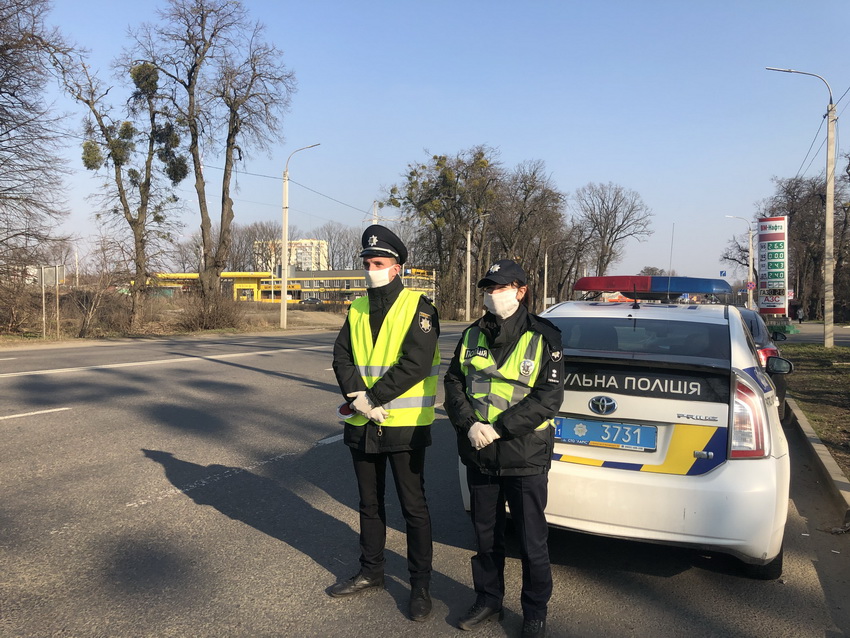 Людей справді немає. На в’їздах та виїздах з Вінниці стоять екіпажі патрульної поліції, які стежать за недопущенням порушення карантинних обмежень. По місту 10 таких екіпажів. Якщо бачать автобус з пасажирами, зупиняють і перевіряють.