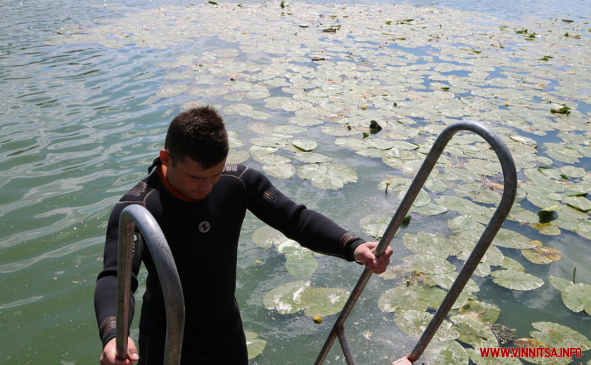 Попри заборону купатися на пляжах, вінничани відпочивають біля води на узбережжі Південного Бугу. Саме тому рятувальники вирішили показати, як допомогти тим, хто не зміг втриматися на воді. Водолази пірнули в річку і сценізували, як поводить себе людина, коли починає тонути і як слід витягувати її з води.