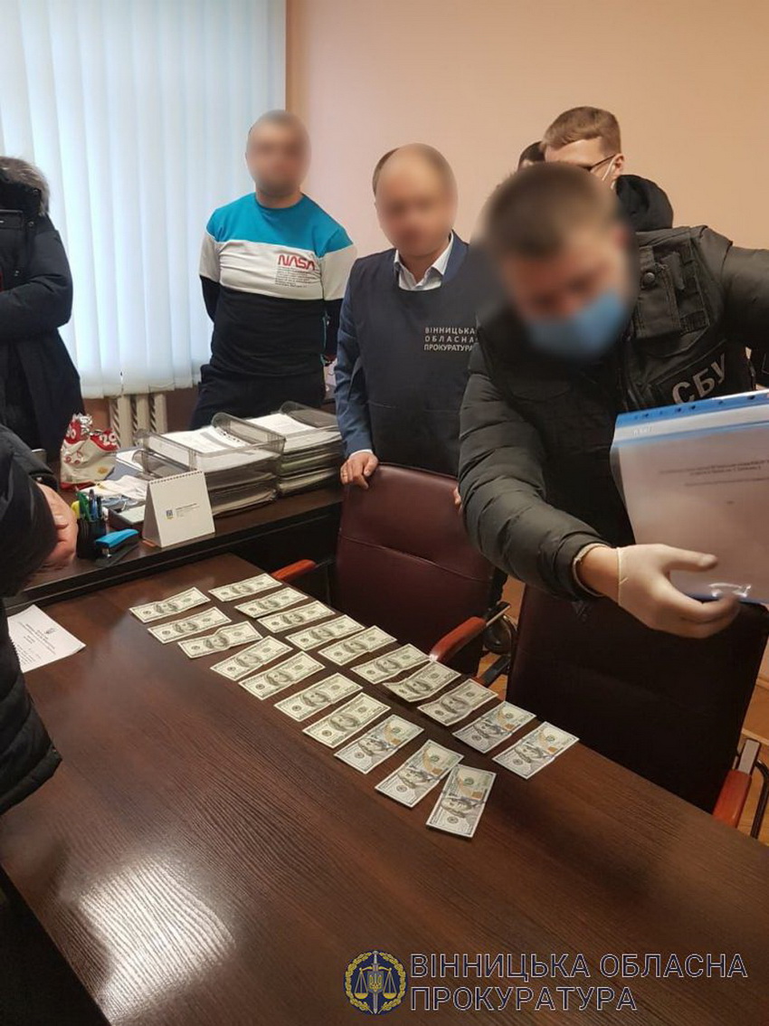 Співробітники Вінницької обласної прокуратури повідомили про підозру в отриманні хабаря керівнику одного з управлінь Вінницької облдержадміністрації. Слідчий суддя Хмельницького міжрайонного суду відсторонив підозрюваного від посади та обрав запобіжний захід у вигляді цілодобового домашнього арешту.