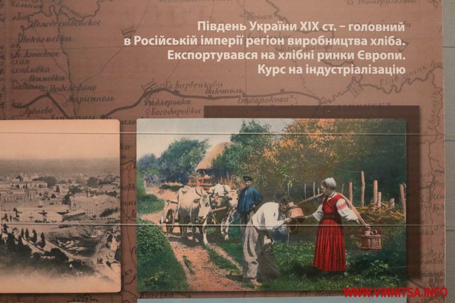 На виставці, яка розмістилася в холі університету зображені історичні фотографії, документи, які руйнують міф про радянську індустріалізацію центру, сходу та півдня України.