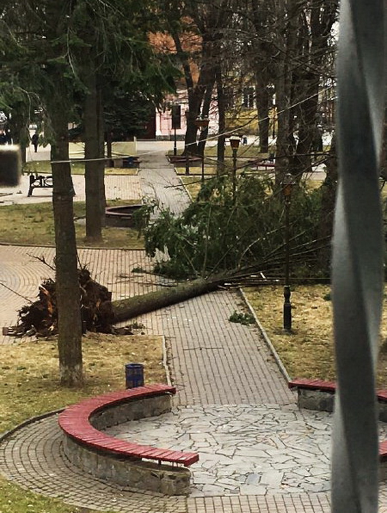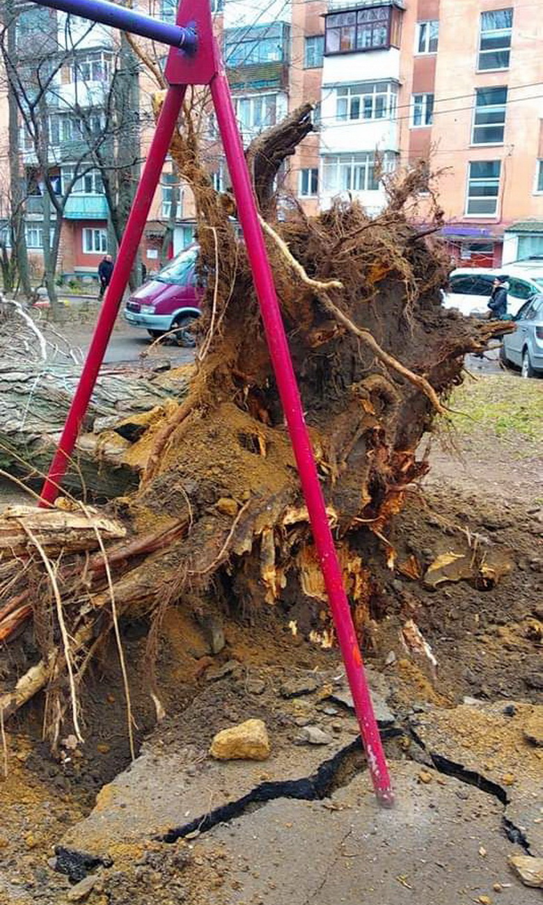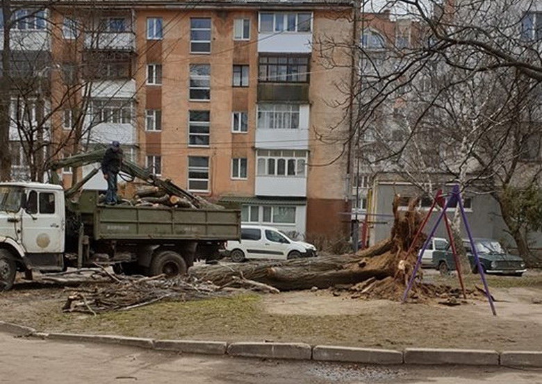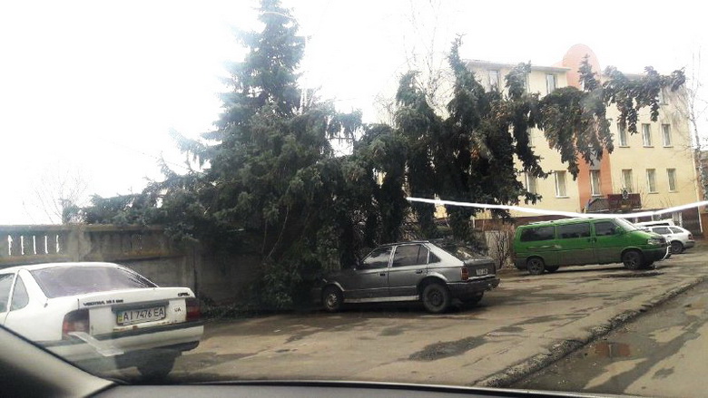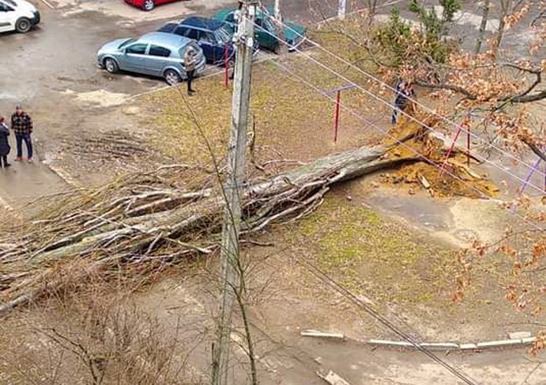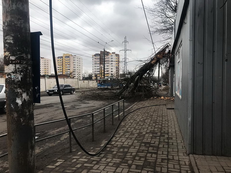 Вінничани у соцмережах публікують фото негоди, на одних повалені стовпи, що заблокували рух по вулиці, на інших – дерева.