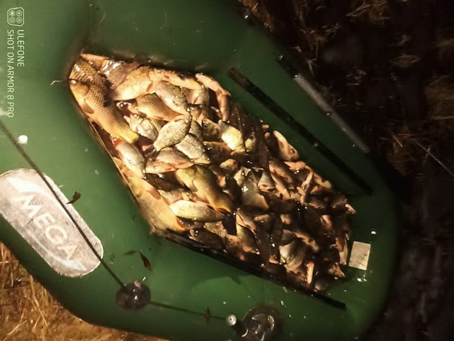 «Порушники, за допомогою заборонених знарядь лову - двох сіток, здійснювали вилов риби: 436 екземплярів карасів, 22 коропи, 16 білого амура та 6 білизни (жерех). Відносно порушників складено адміністративні протоколи за ч. 4 ст. 85 КУпАП. Збитки, нанесені державі в результаті незаконного вилову водних живих біоресурсів, становлять 1 208 190 грн», - йдеться у повідомленні.