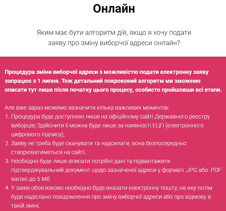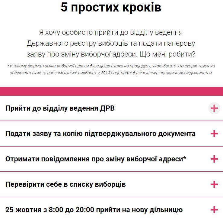 Ця процедура дещо схожа на ту, яку рекордна кількість виборців пройшла під час президентських та парламентських виборів у 2019 році. Проте є й кілька принципових відмінностей, наприклад, обов'язково надати 1 з 6 документів, що підтверджують фактичне місце проживання, а також можна подати таку заяву онлайн. Крім того, ця процедура — довготривала, її не доведеться повторювати перед кожними наступними виборами, якщо людина не змінить у подальшому своє місце проживання.