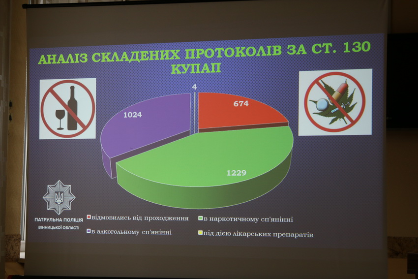 На особливому контролі як громадськості, так і поліції, зокрема, патрульної, є виявлення водіїв, які керують автомобілями в стані сп’яніння. За 2019 рік інспектори склали 2931 протокол на таких водіїв. З них 1229 перебували в стані наркотичного сп’яніння, 1024 – в стані алкогольного та 4 – під дією лікарських засобів, 674 відмовились проходити тест. В поліції відзначають, що за рік змінилася статистика щодо характеру сп’яніння. Якщо в 2018-ому році більшість правопорушників були в стані алкогольного сп’яніння, то в 2019-ому році переважають водії під дією наркотиків, зокрема, канабісу. Причиною таких змін, на думку поліцейських, є відносна доступність та дешевизна наркотичних речовин.
