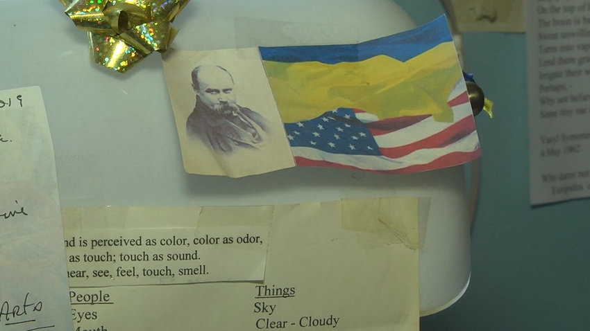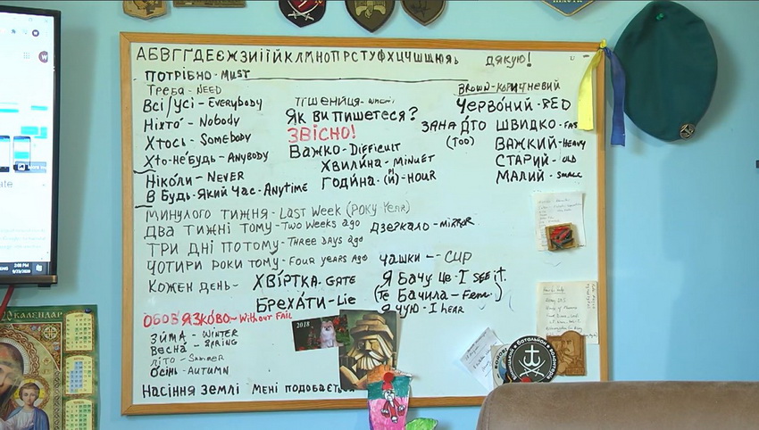 Аби поповнити свій словниковий запас, у кабінеті велика дошка, де українські слова з перекладом на англійську. Вздовж підвіконня назви місяців року.