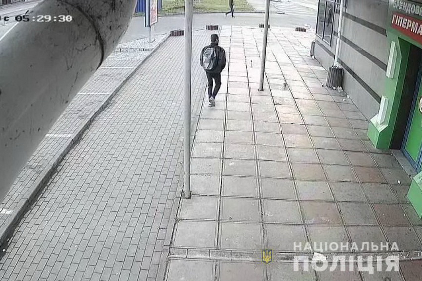 Прикмети розшукуваного: 30-40 років, зріст 170-175 см, худорлявої тілобудови, обличчя худе, на вилицях западини, чорне коротке волосся. Під час вчинення злочину був одягнений в куртку темного та зеленого кольору, темні джинси, світло-сірі кросівки з темними вставками, сірий рюкзак з вставками, палить цигарки.