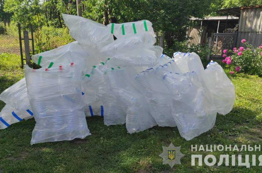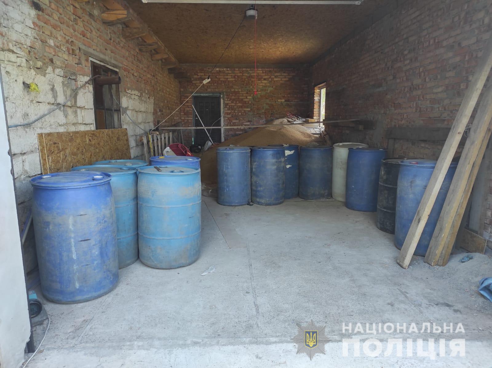 В ході проведення слідчих дій працівники поліції виявили та вилучили близько 5 тонн спирту, пластикові бочки ємністю по 200 літрів, понад чотири сотні тетрапаків, пластикові пляшки, картонні коробки, тетрапаки зі спиртом, компресор для перекачування спирту, мобільні телефони, сім-картки, зошити із записами, квитанції про розрахункові операції та автомобілі, що належать підозрюваним.