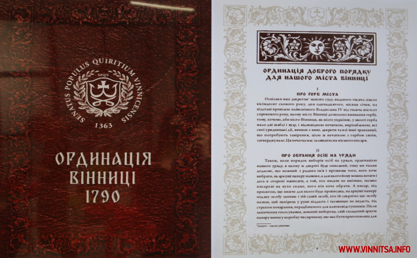 16 травня у Вінниці презентували Ординацію міста 1790 року, яку вдалося віднайти в архівах Ягеллонського університету, що в Кракові. Документ містить цікаві описи життя Вінниці XVІІІ століття. Фактично є статутом населеного пункту.