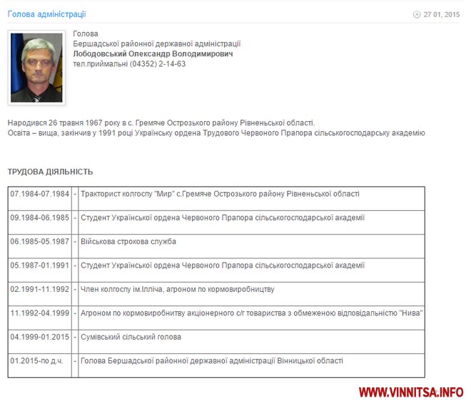 Варто зазначити, що Лободовського призначили на пост керівника району у січні 2015 року. На сайті Бершадської РДА фото і посаду чиновника ще не забрали.