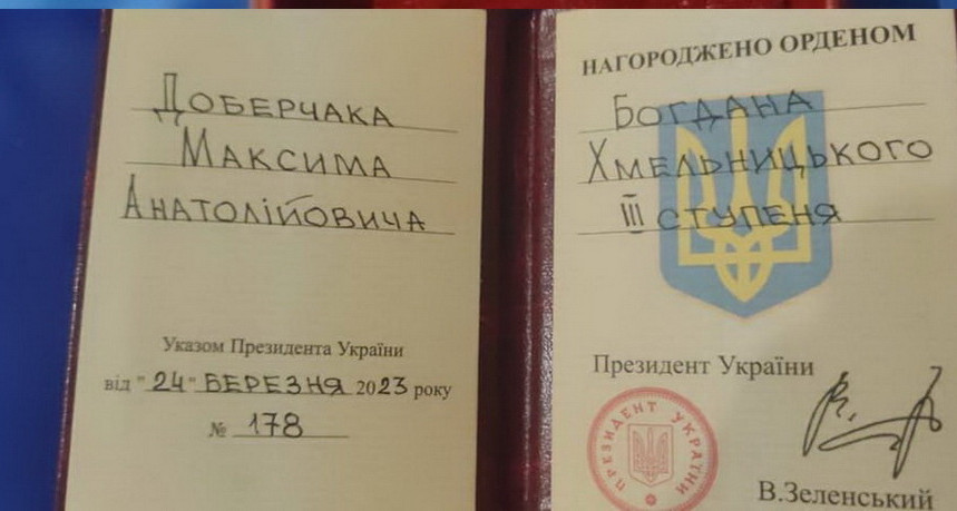 Максим Доберчак з Вінниччини – молодший сержант, випускник Стрижавського ліцею №2. У Запоріжжі Президент України вручив стрижавчанину орден Богдана Хмельницького ІІІ ступеня за особистий внесок у захист державного суверенітету та територіальної цілісності України, самовіддане виконання військового обов’язку та високий професіоналізм.