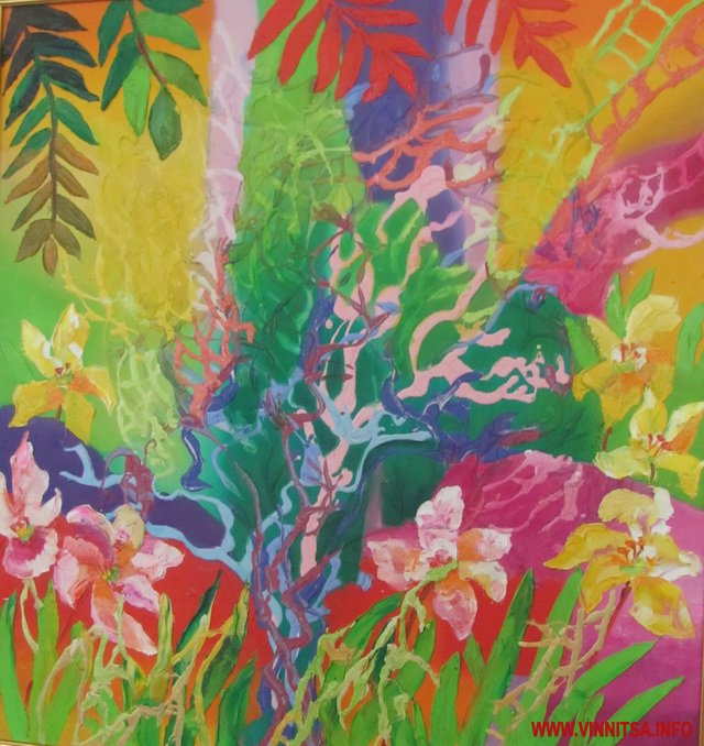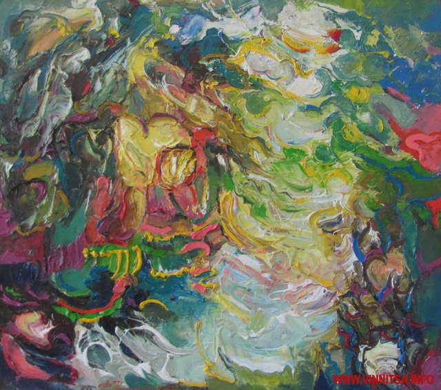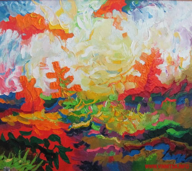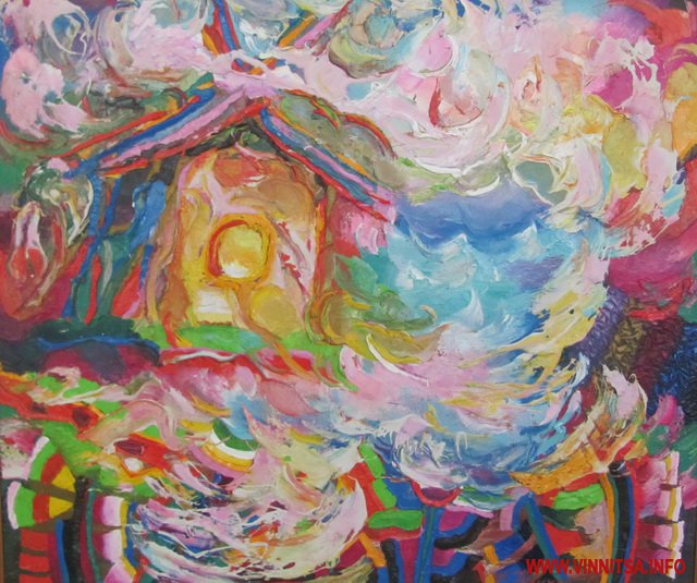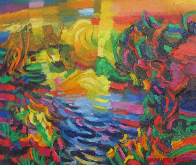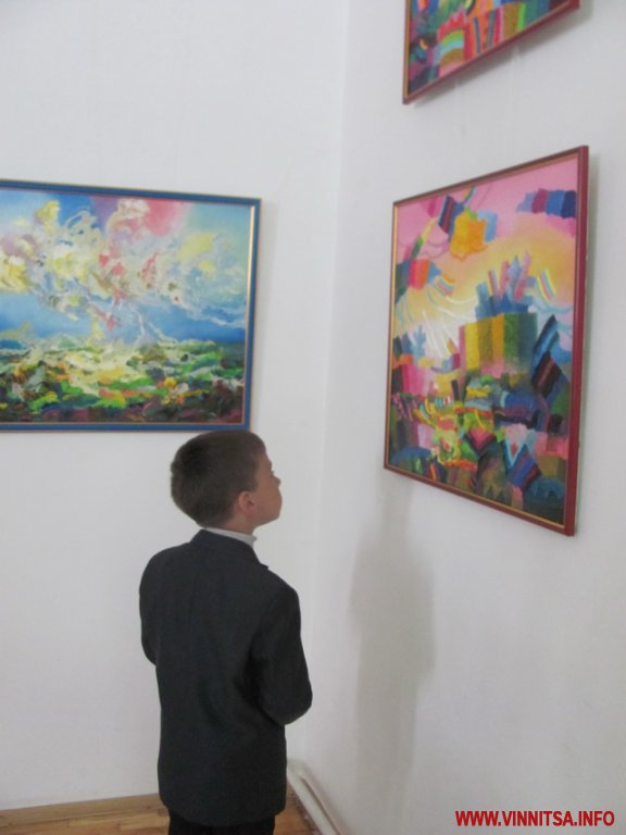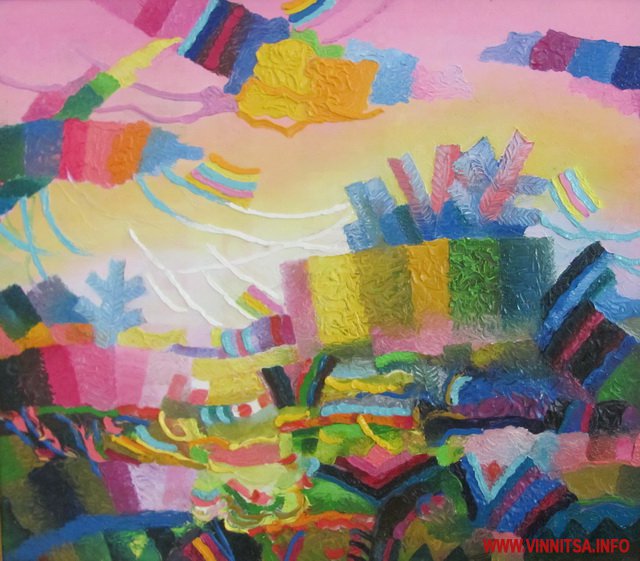 Барвистість його робіт спершу засліпляє, але вже за мить кортить якнайшвидше відгадати потайний зміст цих райдужних поєднань.