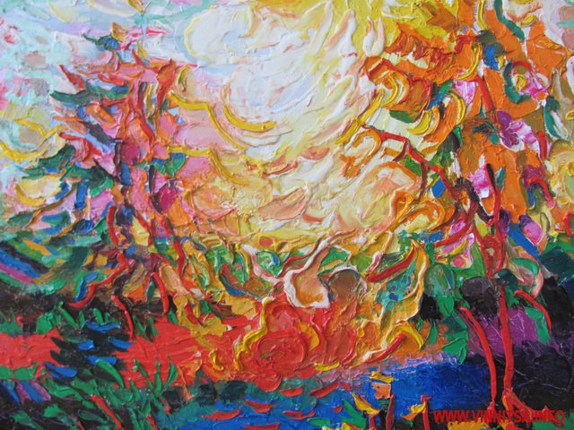 - Коли малюєш 40 років, то вже і з закритими очима можна картини писати, - посміхається Федір Панчук. - А гратися із фактурою я особливо люблю. Вона дарує величезні можливості. Адже у своїх роботах я прагну не просто намалювати дерево, а показати калейдоскоп фарб, не давати людям конкретику, а - можливість подумати й пофантазувати.