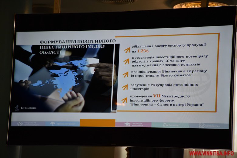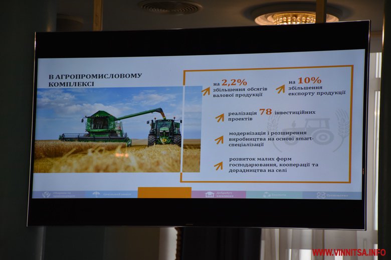 Визначено 11 пріоритетних напрямків. Розвиток промислового комплексу області шляхом створення високо-технологічних виробництв за рахунок реконструкції, технічного переоснащення і розширення діючих виробничих потужностей. Наступного року підприємство компанії UBC Group введе в експлуатацію 2-ї черги заводу. ДП «Електричні системи» введе нову чергу виробництва. Японська компанія Fujikura планує розширення виробництва в Немирові. «Вінницька птахофабрика» планує 2-чергу птахокомплексу і запуск на повну потужність біогазового комплексу. Розпочнеться будівництво заводу Head з виробництва спортивного інвентарю. Заплановано розпочати будівництво заводу з переробки кукурудзи компанії Bunge, і заводу з поглибленої переробки кукурудзи в Гнівані. Планується розширити можливості галузі ІТ-технології шляхом легалізації бізнес ІТ-сектору, в якому за підрахунками працює близько 10 тис. осіб. Розвиток бізнесу-інкубатора, створення ІHUB і створення безпечних умов діяльності бізнес ІТ-компаній та створення прозорих відносин з контролюючими органами. Це дасть можливість створити біля 3,5 тисяч нових робочих місць. В галузі промисловості прогнозується зростання обсягів виробництва за рахунок залучення інвестицій.