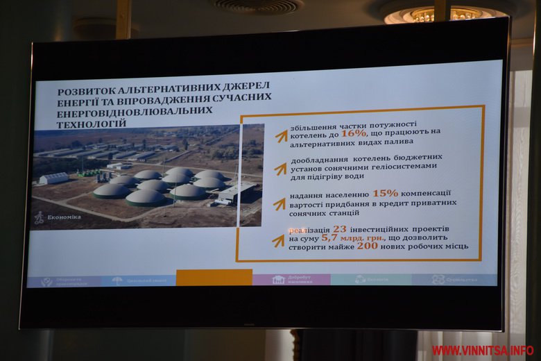 В 2016 році приватними інвесторами в галузі альтернативної енергетики заплановано продовження реалізації 23 інвестиційних проектів на суму понад 5,5 млрд. гривень, що дозволить створити додатково майже 200 нових робочих місць. Заплановано відновлення малих гідроелектростанцій на суму 4,5 млн. гривень. Будівництво комплексів по переробці відходів сільськогосподарського виробництва в біогаз – на суму понад 1 млрд. гривень. Встановлення лінії по переробці відходів сільськогосподарського виробництва в паливні брикети і пелети – 2 проекти на суму майже 8 млн. гривень.
