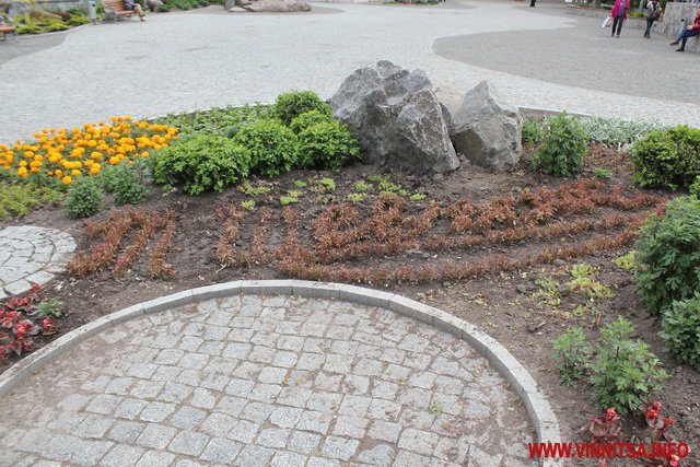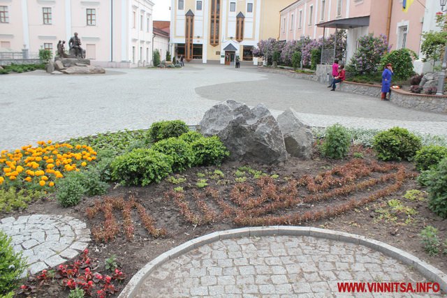 У Вінниці в травні на площі Тараса Шевченка з квітів висадили напис «Т.Шевченко».