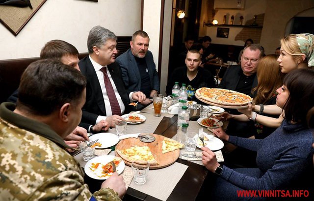 Порошенко та ті, хто з ним прийшов, а це були : керівник ОДА Валентин Резніченко, мер Дніпра Борис Філатов, народні депутати Юрій Береза та Тетяна Ричкова, радник президента Юрій Бірюков і керівником облради Дніпра Гліб Пригунов, розрахувались за піцу.