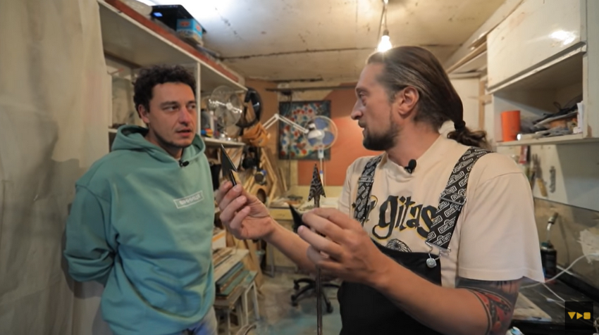Вироби зі шкіри. Сумки, ремені, дизайнерські браслети для годинників, нагаї та «іграшки для дорослих»… Майстер 25 років працює в цій індустрії. Але у Вінниці він 6 років. Спочатку бізнес почали в Криму, у Сімферополі, з початком російської окупації переїхали у Вінницю. «Почав все як хобі. Зробив для себе один браслет, всім сподобалось, сказали, хочуть таке саме. Так це був спочатку мій додатковий заробіток», - говорить майстер. Браслет для годинника коштує від 60 до 120 доларів.