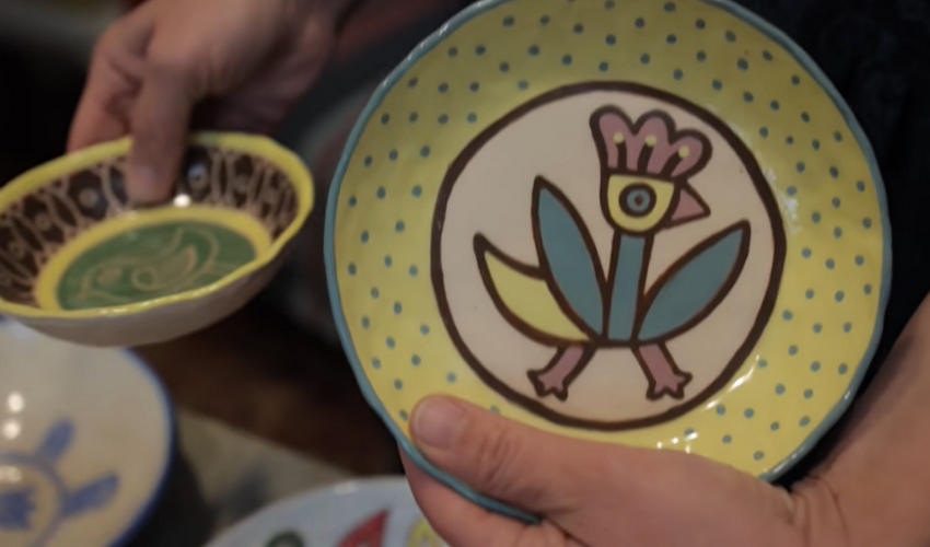Кераміка і картини. Юлія Гушол виготовляє кераміку за древніми технологіями. Тарілки всі різні, жодна не повторюється.