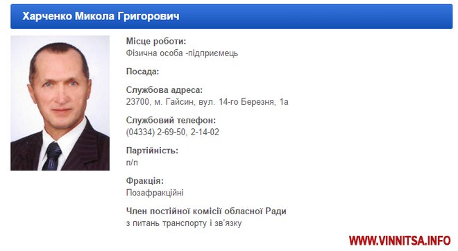 Одноосібним власником ТОВ «Хитрий Лис» є Микола Харченко – депутат Вінницької облради (безпартійний, позафракційний), приписана фірма за його ж службовою депутатською адресою. Фірму «Хитрий Лис» зареєстрували 2 лютого 2013 р., а рішення про відвід угідь компанії було прийнято 28 лютого, тобто вже за кілька тижнів після заснування. Статутний фонд фірми складає 10 млн. грн.