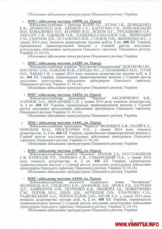 Військова прокуратура Одеського гарнізону оприлюднила перелік військовослужбовців, які змінили присяги на вірність українському народу і служать Росії.