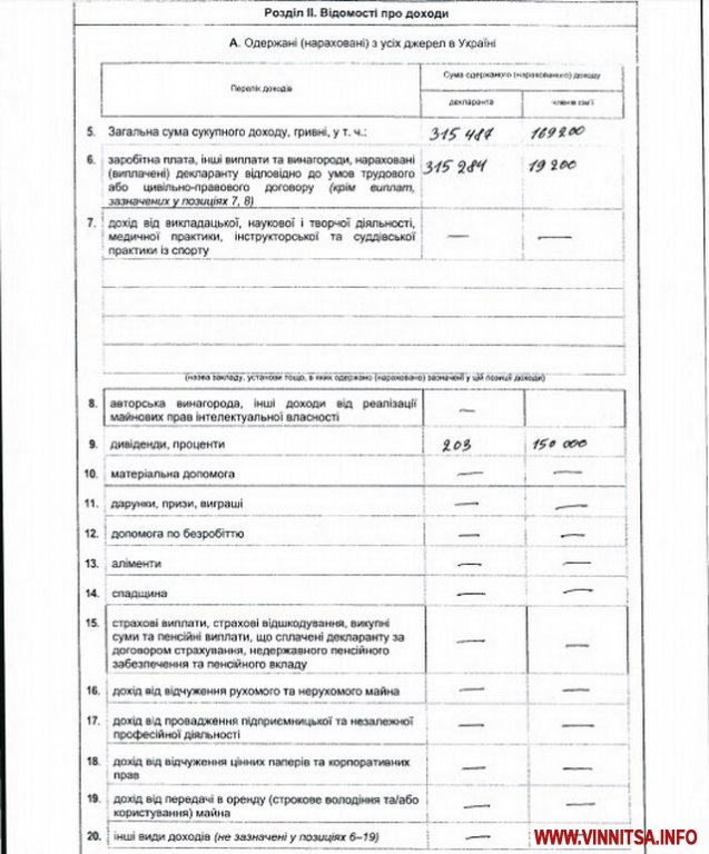 Заробітна плата В’ячеслава Сколового 315 284 грн., 203 грн. – проценти та дивіденди. Члени родини отримали за рік 19 200 грн. заробітної плати та при цьому 150 000 грн. процентів та дивідендів.
