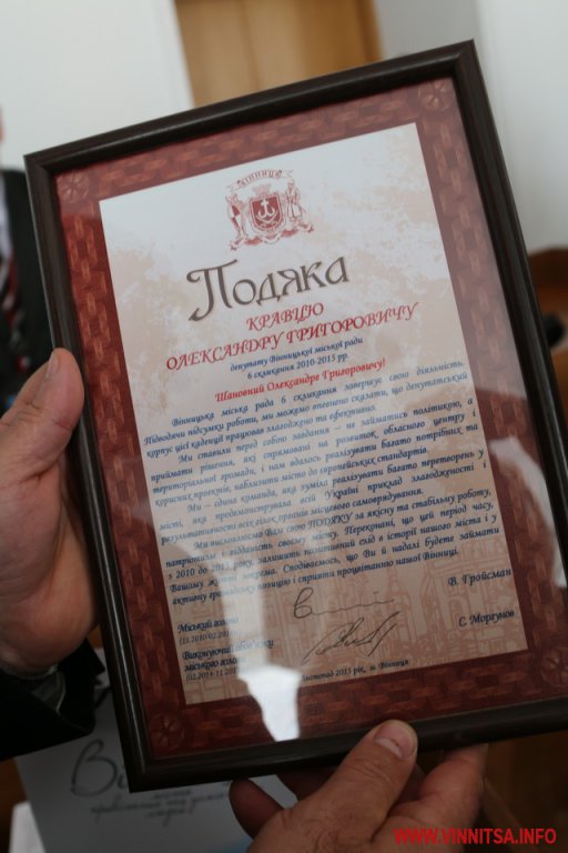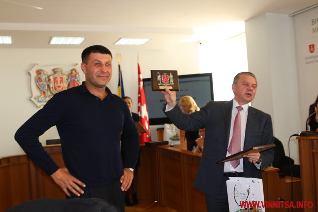 На завершення сесії, депутати отримали подарунки – Подяки та «іменний» Герб Вінниці.