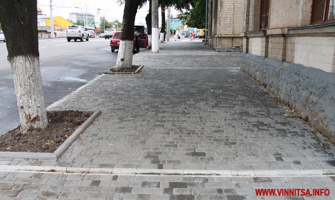 «По проспекту Коцюбинського, від вулиці Нансена до площі Жовтневої, покладено 1008 м2 нової плитки. У рамках капітального ремонту тут  влаштовані водовідвідні лотки та пандуси для візочників та мам з колясками. У серпні на тролейбусній зупинці буде облаштовано тактильну плитку для слабозрячих людей, вона допомагатиме їм вільно користуватися громадським транспортом», – зазначив заступник директора департаменту комунального господарства Вінницької міської ради Юрій Павлінчук.