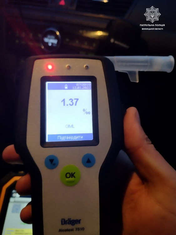 12 січня, у Вінниці патрульні випадково натрапили на нетверезого водія. Керманич Daewoo Nexia порушив ПДР проїхавши перехрестя по вулиці Пирогова на червоне світло. Коли його перепинили патрульні поліцейські, то у поведінці 21-річного чоловіка помітили ознаки сп’яніння. Проходити алкотест на Drager, той не відмовився. Спецприлад зупинився на позначці 1,37 проміле.