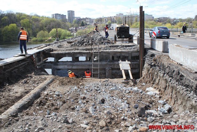 У Вінниці минув рік від початку капітального ремонту Київського мосту. За цей час, основні роботи, що проводились, були направлені на укріплення мостової споруди. Станом на кінець березня 2018-го роботи виконані на 70%.