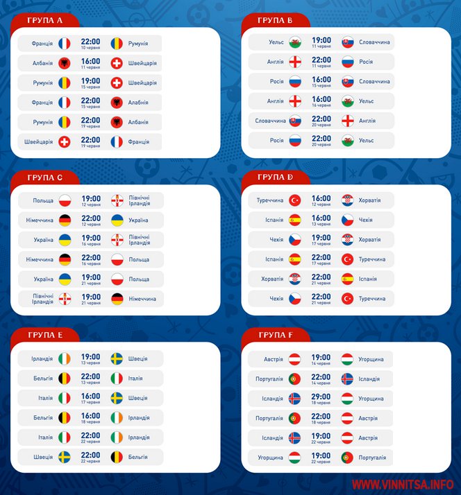 Розклад матчів Чемпіонату Європи з футболу