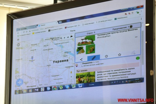 Андрiй Янченко презентував проект «Вiльна мапа». «Подорожуючи мiстами, люди звертають увагу на визначнi мiсця, але, на жаль, часто трапляється, що про них немає iнформацiї навiть в Iнтернетi. Тому виникла iдея розмiстити на визначних об'єктах мiста Вiнницi iнформацiйнi QR коди. В сучасному свiтi кожна людина має гаджети i може просканувати QR код та отримати доступну iнформацiю. Цей проект несе в собi освiтню мету для вiнничан. Важливо, що QR коди на об'єктах архiтектури не будуть псувати їхнiй зовнiшнiй вигляд, а кожен турист зможе отримати iнформацiю, адже вона буде представлена на трьох мовах. Також в проектi врахована iнклюзiя», – розповiв Андрiй Янченко.