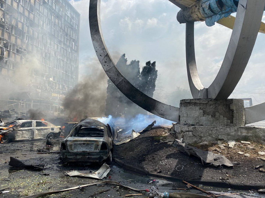 14 липня росія вдарила по Вінниці ракетами. В 10:45 сталося влучання на паркувальний майданчик поблизу дев’ятиповерхового Будинку побуту «Ювілейний». Також частково зруйновано медично-діагностичний центр, розташований поруч.