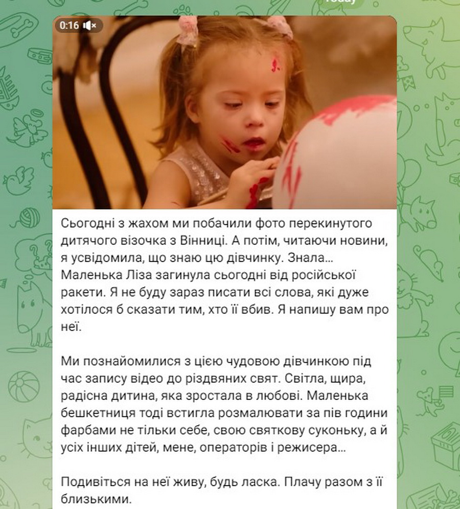 Загинула 4-річна Ліза, яка під час прильоту ракет йшла з мамою по вулиці. Дівчинка йшла на заняття до логопеда. Про це її мама розповідала у своєму Інстаграм за дві години до трагедії.