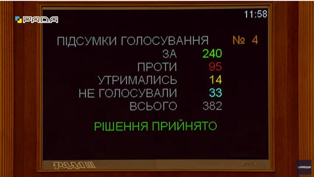 Дане рішення підтримали 240 нардепів, 95 проголосували «проти».
