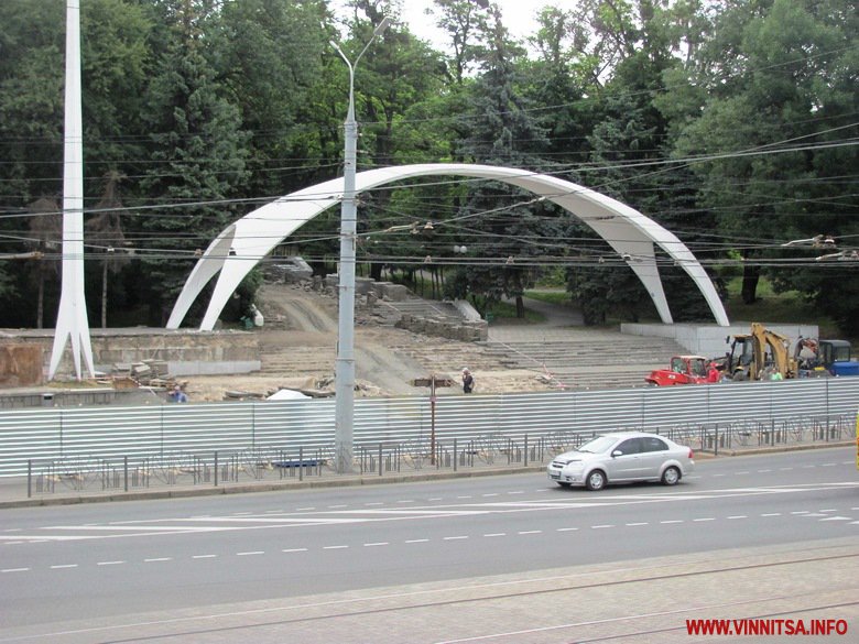 Чотири дні тому у Вінниці розпочали реконструкції входу до Центрального парку. 7 червня площу перед аркою обгородили металевим парканом. Фактично, прохід для пішоходів закритий, однак не всі звертають увагу на ремонті роботи і йдуть через будмайданчик.