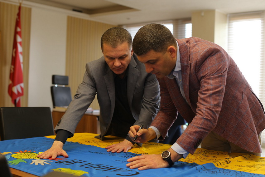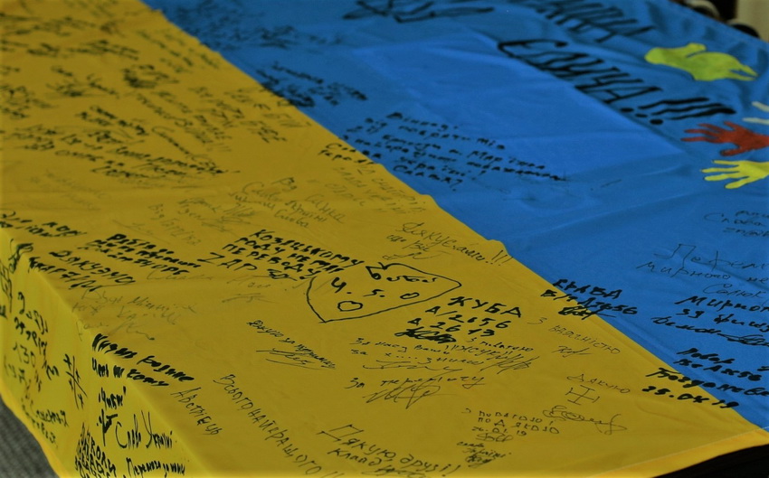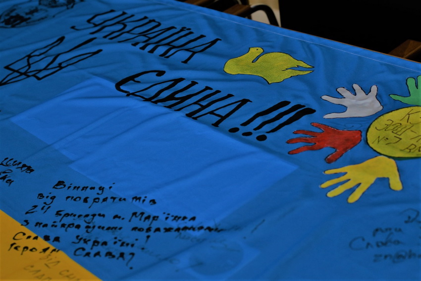 «Ми цей захід проводимо четвертий рік поспіль. Цього року, у зв’язку з подіями, що відбуваються на Сході країни і в середині нашої держави, хлопці ініціювали підписання прапора з меседжем «Україна єдина». Це засвідчує прагнення бійців, які знаходяться з зоні ООС. Стяг проїхав від Щастя до Широкино – це 99% лінії розмежування. На цьому прапорі більше 300 підписів і побажання хлопців для вінничан, їхні подяки. Також є автографи дітей вінницьких шкіл, свій підпис залишив прем’єр-міністр.