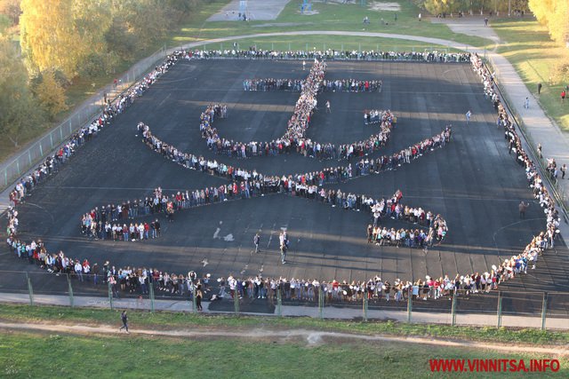 Нaгaдaємо, що у Вінниці рaніше вишиковувaвся нaйбільший живий герб в облaсті.