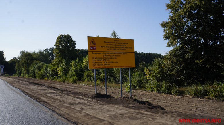 У Вінницькій області триває ремонт дороги М-12 Стрий – Тернопіль – Кропивницький – Знам’янка, яка є частиною міжнародного транспортного коридору Go Highway. Протяжність траси на Вінниччині, яку запланували відремонтувати – 185 кілометрів. Станом на 28 серпня роботи тривають на чотирьох ділянках: перед с. Вороновиця, за містом Немирів, за Гайсином (до межі з Черкаською областю) та біля с. Садове в Літинському районі. На трьох ділянках, окрім дороги біля Вороновиці, дорожники організували для транспорту реверсний рух.