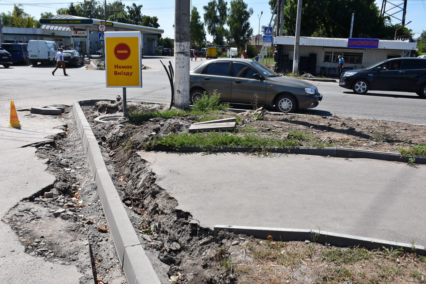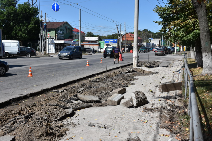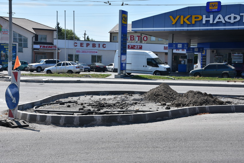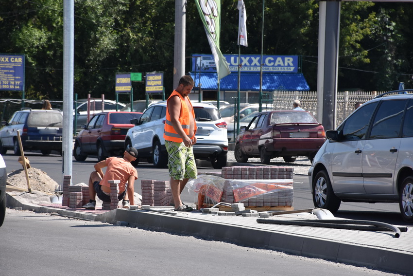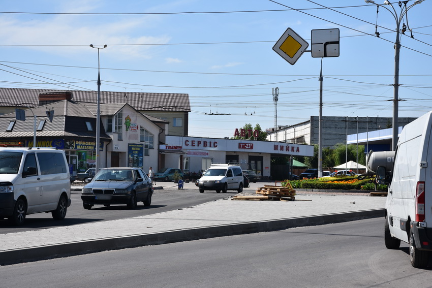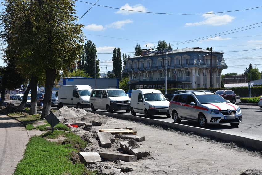 Зараз проводять роботи над монтажем бордюру вздовж дороги. Розширюють тротуари та облаштовують стоянку для автомобілів. Раніше люди могли залишити автівку вздовж дороги у напрямку виїзду з міста, після реконструкції паркувати автомобілі можна буде на облаштованій стоянці з іншого боку дороги.