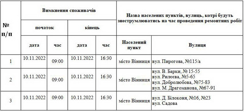 За інформацією СО «Вінницькі міські електромережі», з 09.00 до 16.30 у звязку з ремонтом мереж буде призупинено електропостачання за адресами: