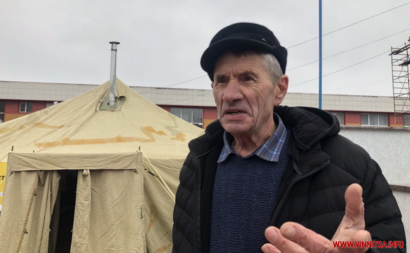 Уже за перші кілька годин роботи наметів сюди заходять літні люди, аби погрітись.