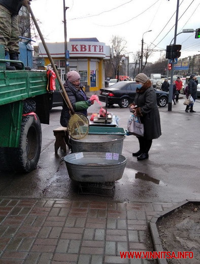 Під будинками розклали деки зі свіжою рибою. Люди поодиноко її купують. Поряд до магазину зі свіжим м'ясом також черга.