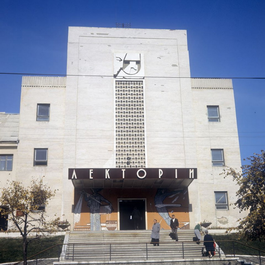 Вінницький костел, перероблений радянською владою на лекторій, фотографія 1966 року (автор — Ян Тихонов).