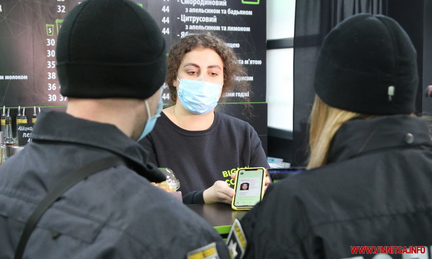 У Вінниці, 8 грудня, рейдова група поліції здійснювала перевірки на дотримання карантинних вимог. Перевіряли кав’ярні, магазини з одягом та продуктові.