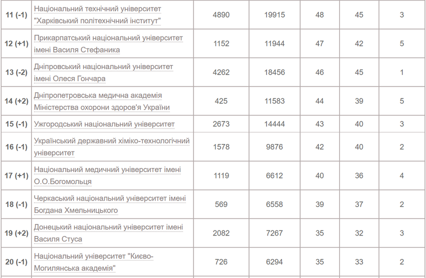 Вінницький національний технічний університет на 32-й позиції. Вінницький національний медичний університет на 56-й сходинці. Вінницький державний педагогічний університет ім. М. Коцюбинського - на 107-й.