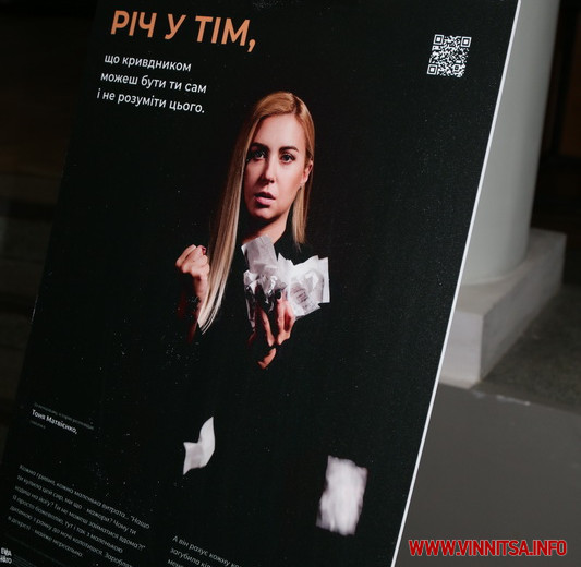 У Вінниці, 25 листопада, розпочалася всеукраїнська акція «16 днів проти насильства». Щорічно вона проводиться з 25 листопада до 10 грудня включно. Цьогоріч, цій темі присвятили виставку «Річ у тім». Для створення виставки були залучені артисти, футболіст, науковець та інші відомі людини.