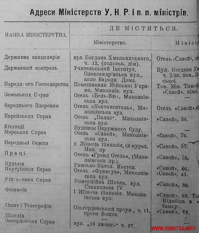 Сьогодні виповнюється 100 років з часу, коли Вінниця стала тимчасовою столицею Української Народної Республіки (2 лютого – 6 березня 1919 р.)
