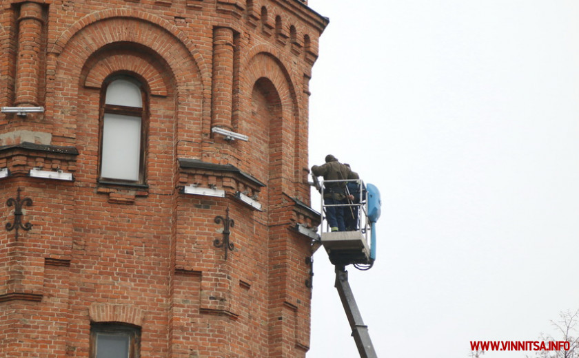 «Будемо оновлювати освітлення. Необхідно замінити лампи, які розташовуються навколо Вежі», - розповідають Вінниця.info ремонтники.